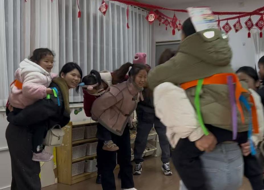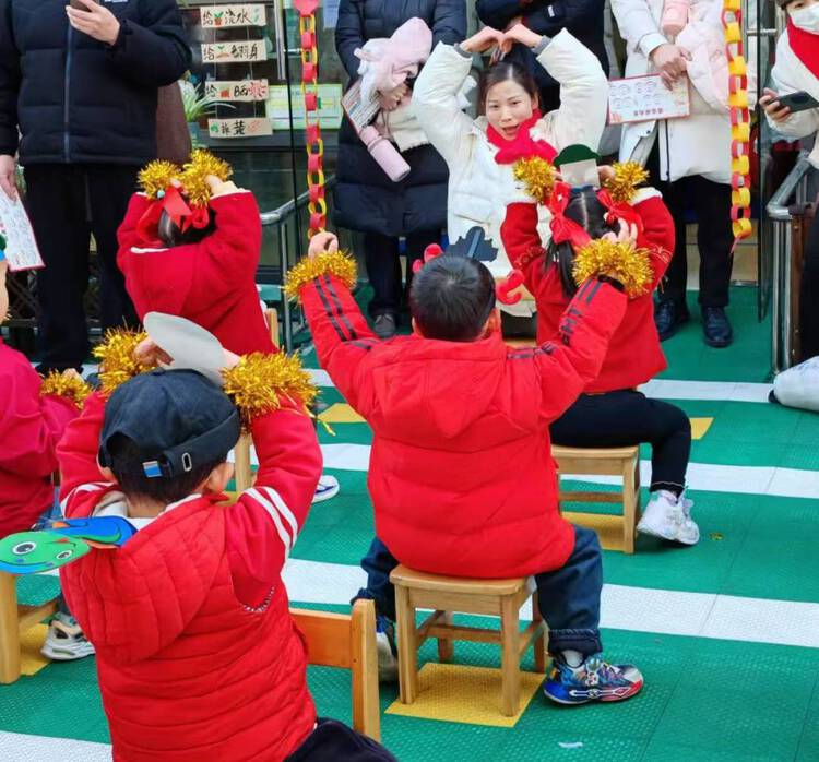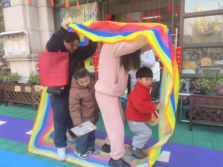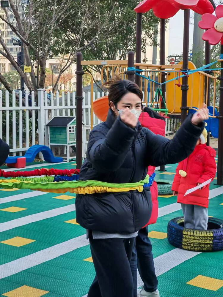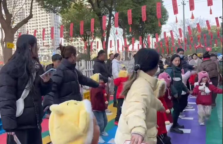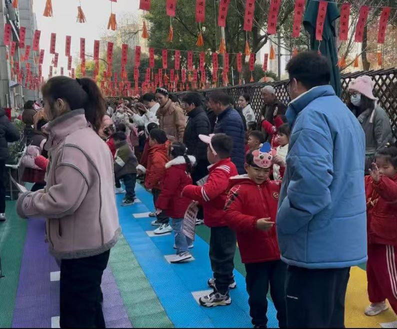 孩子们像一条条灵动的小蛇,迅速地把身上的“皮”脱下来,家长们在一旁加油助威,欢笑声此起彼伏,现场一片欢乐的海洋。这个项目锻炼了孩子们的身体灵活性和反应速度。
