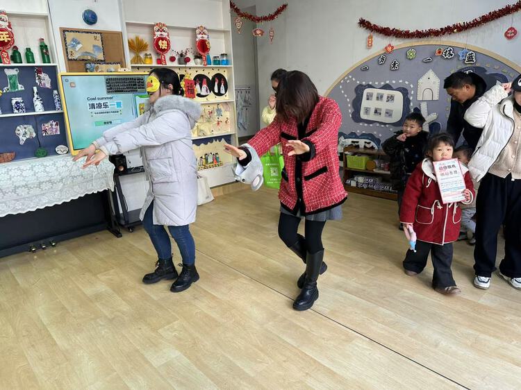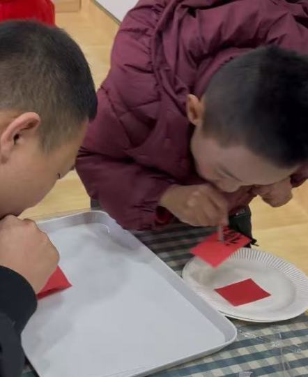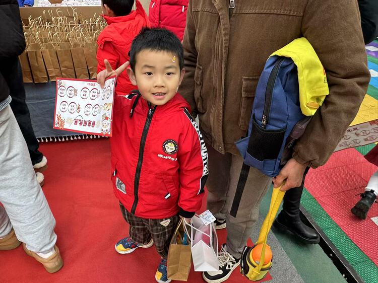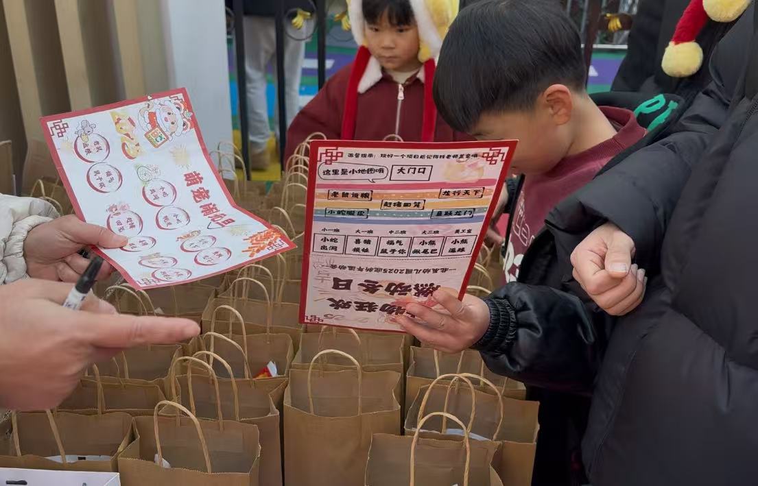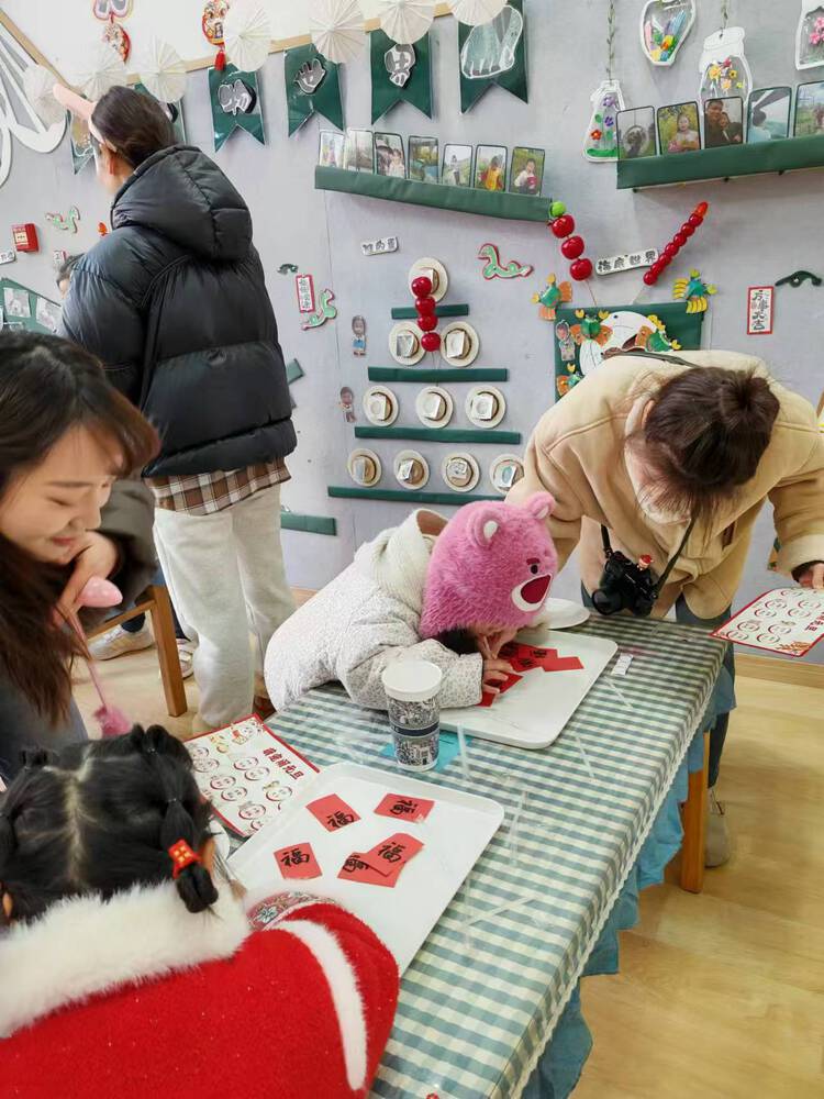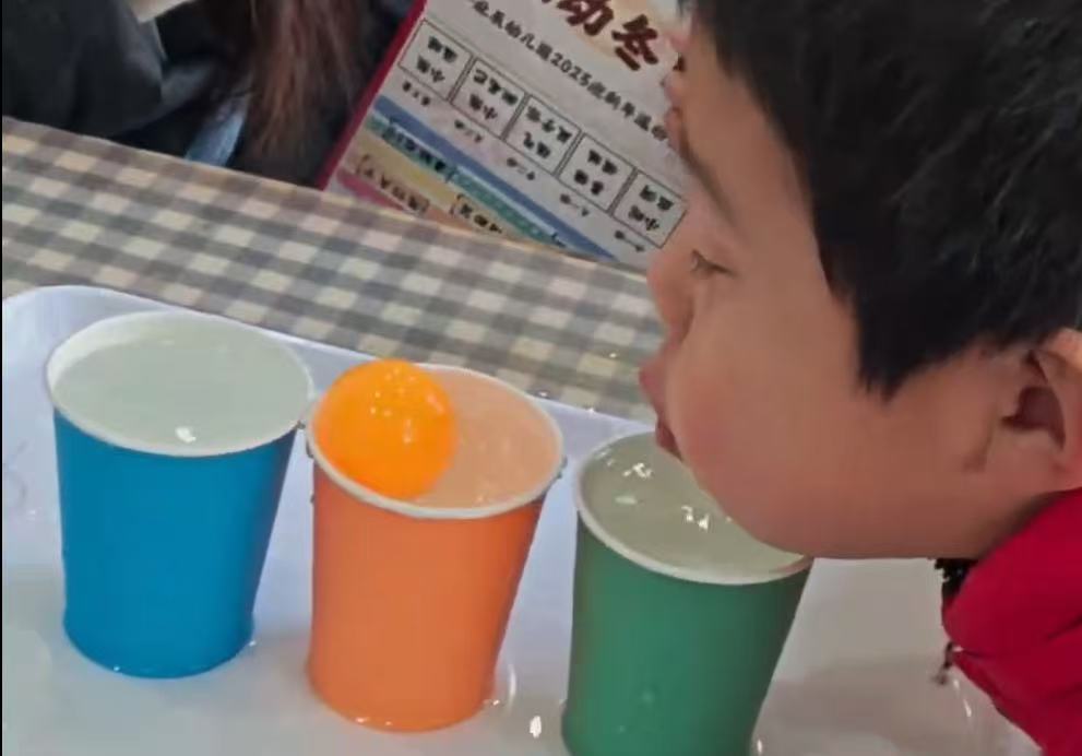 孩子们用吸管吸住代表福气的纸条,小心翼翼地运送到盘子里,仿佛真的在把满满的福气带回家,让他们在欢乐中感受新年的氛围,沉浸在充满趣味的游戏中。