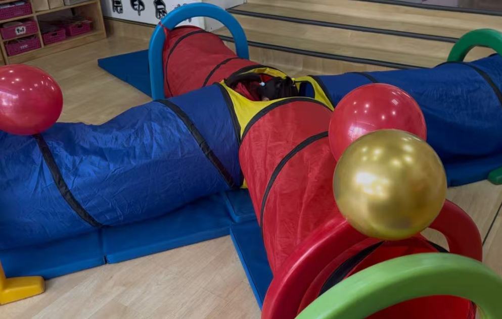 小朋友们需要通过吹的方式,努力将球吹到指定的地方。这个项目锻炼了这个游戏锻炼了孩子们的口腔肌肉和手眼协调能力。