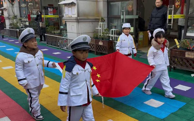 “小蛇们”排着队依次从“洞”中爬出,朝着目标前进。孩子们小心翼翼又充满期待的模样十分可爱。