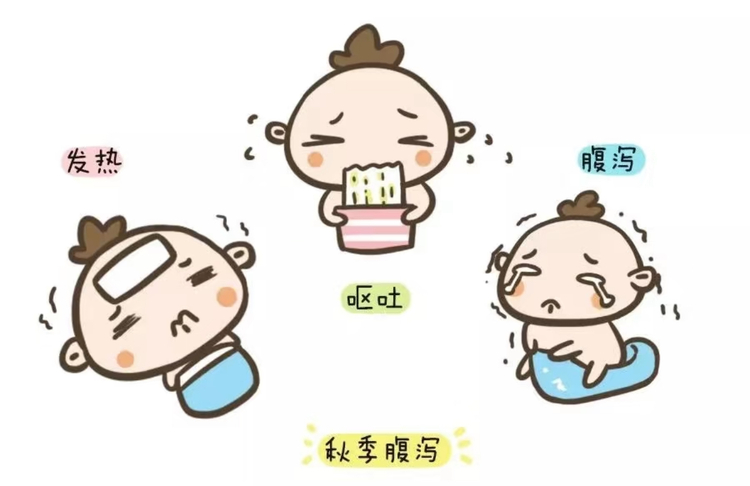 秋季腹泻多由轮状病毒感染引起,潜伏期2-3天,初期常伴有感冒症状,多数患儿还会有发热现象,体温在37.9-39.5℃,继之出现吐泻症状,大便呈白色、黄色或绿色蛋花汤样,带少许黏液,无腥臭味,每天10次左右。秋季腹泻一般持续3-9天,前3天症状最严重。